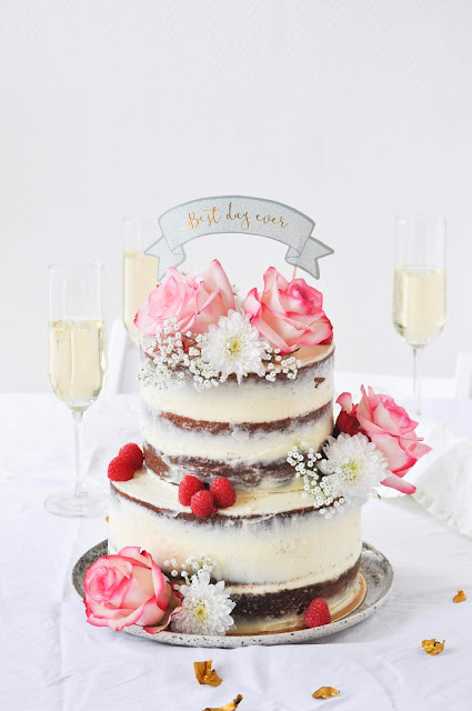 Si j'admets être une dingue de fromage, j'ai choisi l'option naked cake. En effet, autrefois boudé par les invités (trop de sucre, génoise sèches), ce gâteau originaire des États-Unis, a su conquérir le coeur des convives. En plus d'être simple dans ses goûts et textures, il reste sobre, élégant et adopte même un petit côté rustique. Autant dire que ce dessert hybride saurait se prêter à un mariage tout aussi fastueux que frugal.
