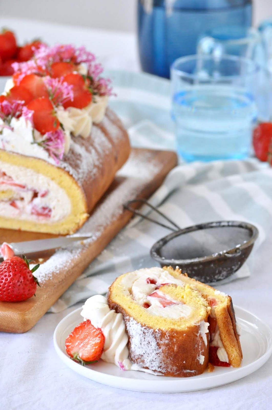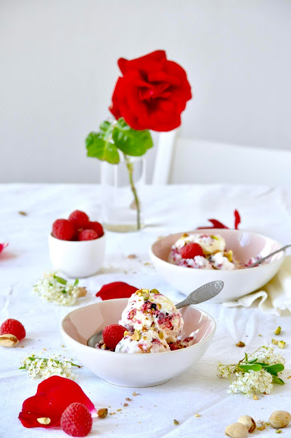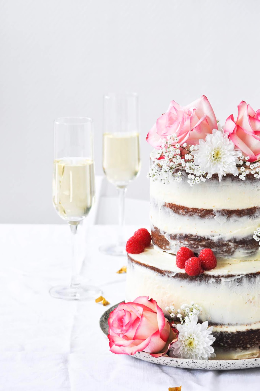 J'ai réalisé ici un "naked cake" (gâteau à étages) pour environ 30 personnes. Quelques couches de génoises entre lesquelles est étalée une compote de framboises, le glaçage est quand à lui confectionné à base d'une crème de mascarpone montée et subtilement parfumée à la rose.