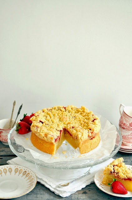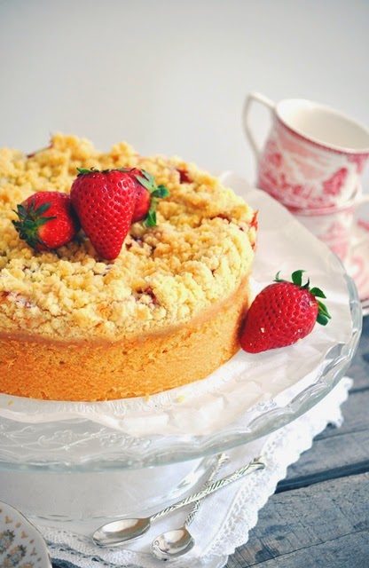 Je suis allée voir mon autre petit primeur (oui je fais des infidélités, mais toujours pour la bonne cause), qui lui m'aurait donné toutes les fraises en cagettes. "Encore des mots, toujours des mots, les mêmes mots... Rien que des mots", mon deuxième petit primeur essaie d'être sympa alors que je sais très bien que ça ne sont plus des poches que j'ai sous les yeux, mais bien des sacs. Rien que pour cette petite attention cependant je lui en prend une de cagette et puis je me dit qu'après tout un strawberry crumb cake fait la part belle au clafoutis pardi !