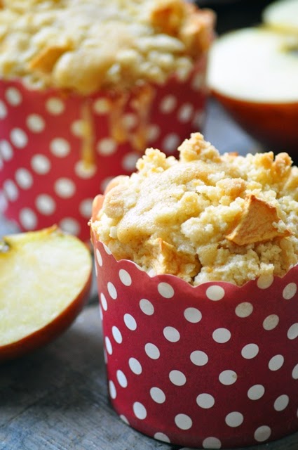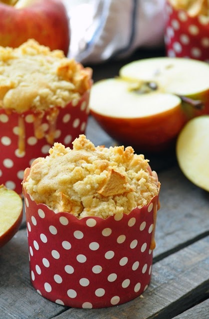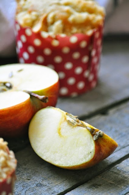 6. Répartir la préparation dans les moules à muffins puis saupoudrer de streusel et de dès de pommes.